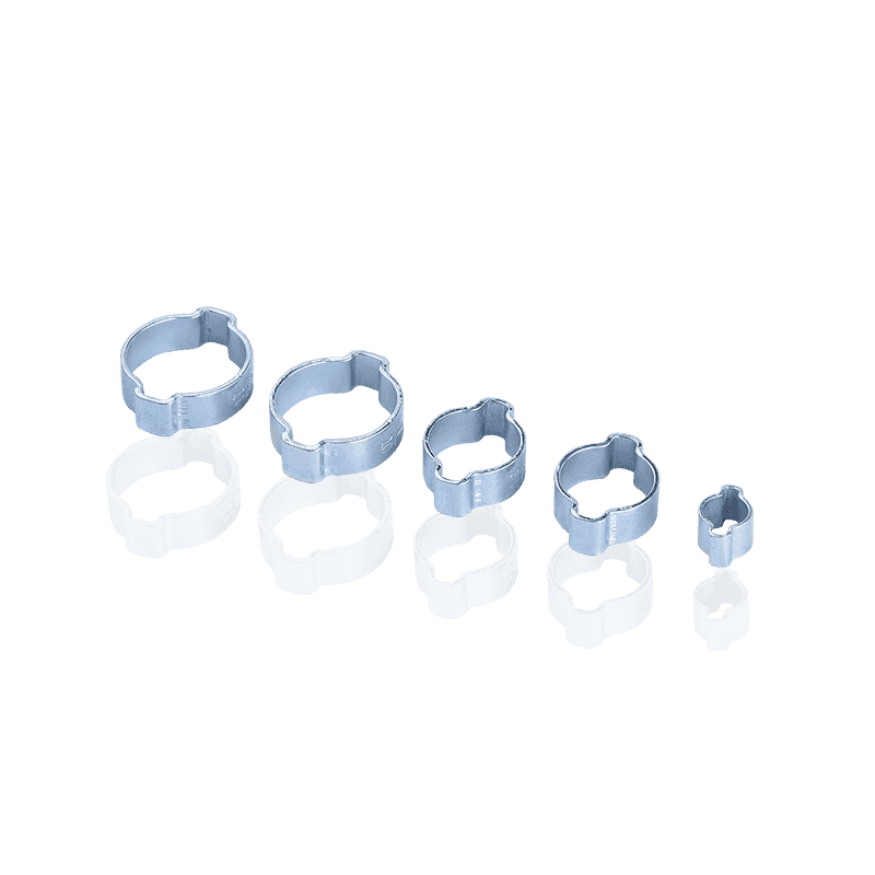 Diferit de clema tradițională cu o singură ureche, clema dublă pentru ureche formează o forță de strângere mai echilibrată și mai puternică prin aplicarea forței pe ambele părți în același timp, prevenind în mod eficient slăbirea sau căderea furtunului sau cablului din cauza vibrațiilor, schimbărilor de presiune și alte motive în timpul utilizării. Datorită designului său unic, clema dublă pentru urechi poate face față cu ușurință unei game mai largi de diametre de furtun și poate obține o fixare stabilă de la țevi mici la cele groase pentru a satisface nevoile de utilizare în diferite scenarii.